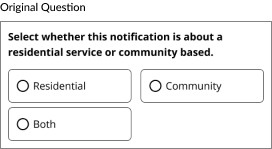 Additional text was added to this question to explain clearly what is meant by residential or community based services.